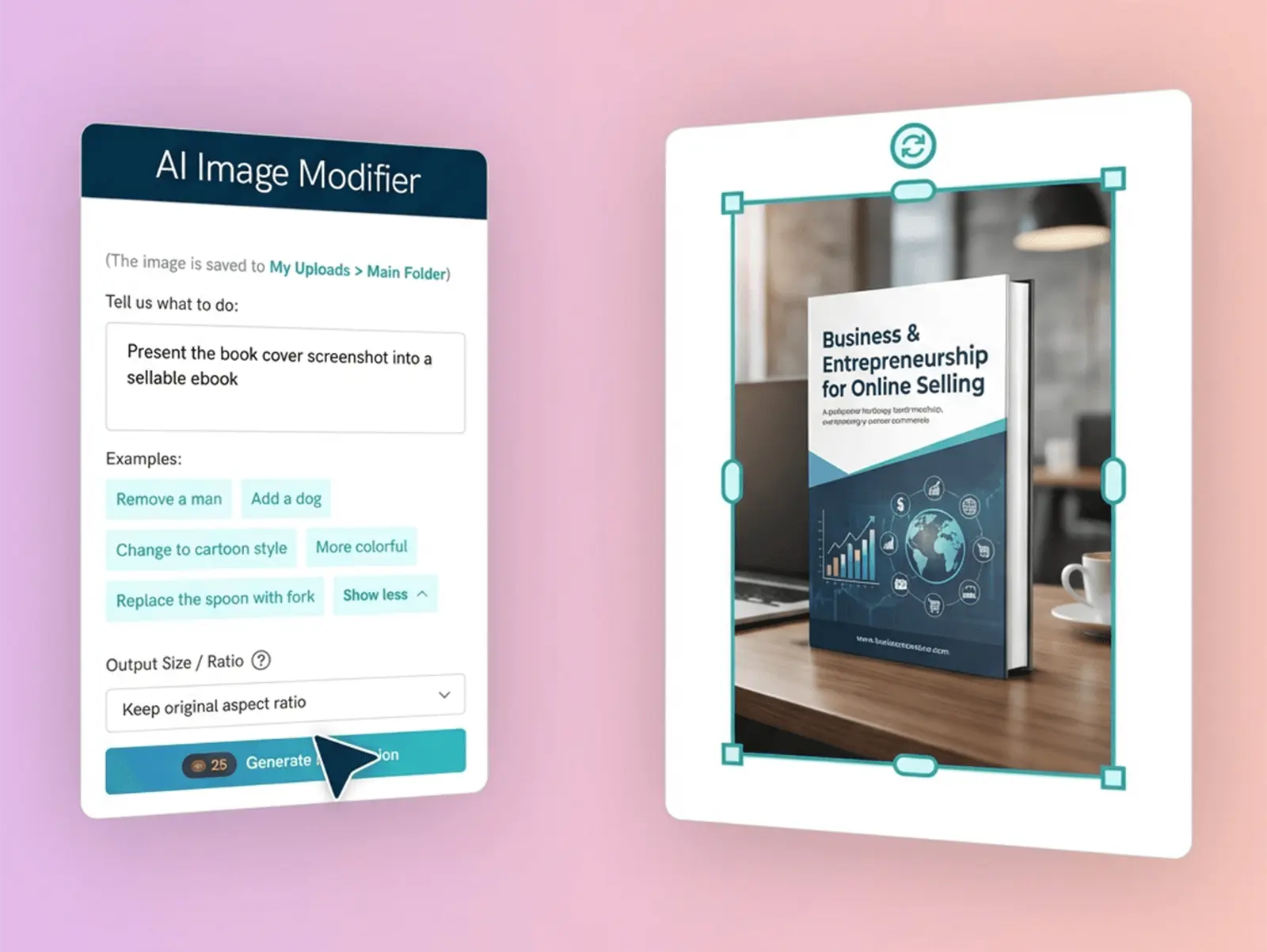 Describe what you need, and Pikto AI builds it. Adjust, upscale, or clean it up without opening another tool or tab.