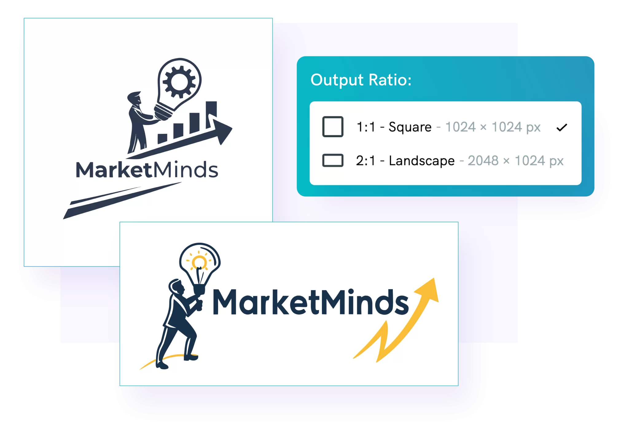 Get the right fit the first time. Generate square (1:1) logos for social avatars or wide (2:1) formats for website headers.