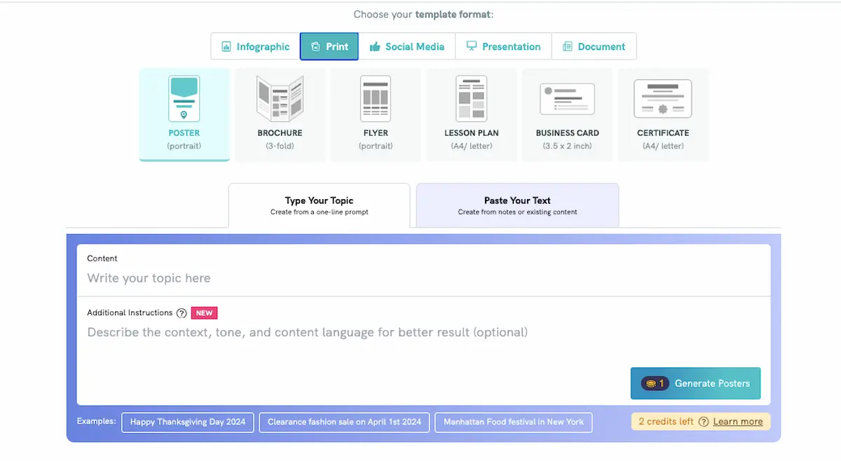 Our AI-powered poster generator can turn any prompt into a gorgeous poster in seconds. You just need to enter a few details about what you’d like to be included.