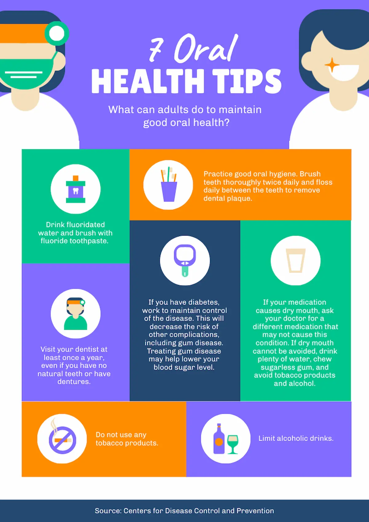 The design of this oral health poster allows you to present multiple health tips without overemphasizing any one suggestion. The balanced visual weight given to each section means that no single suggestion seems like it’s dominating, which is perfect when all your information is equally important.