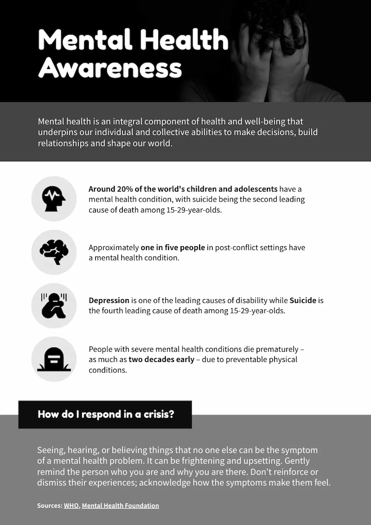 Students often have more time to read a text-heavy poster, making this mental illness check poster an ideal template for a school setting.