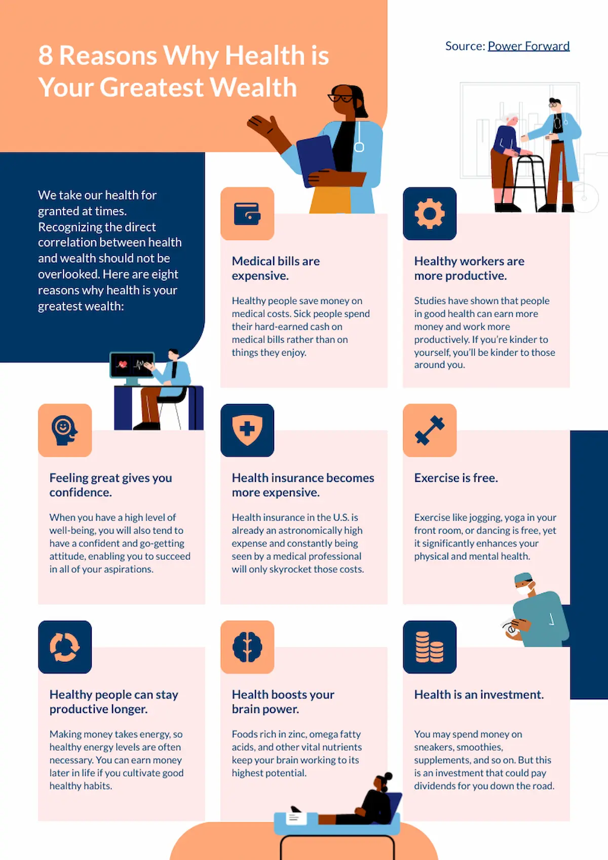 The motivational health is wealth poster helps patients understand the long-term benefits of prioritizing their health and well-being. Like the oral health poster, you can use this template to share multiple points that all support a key message.