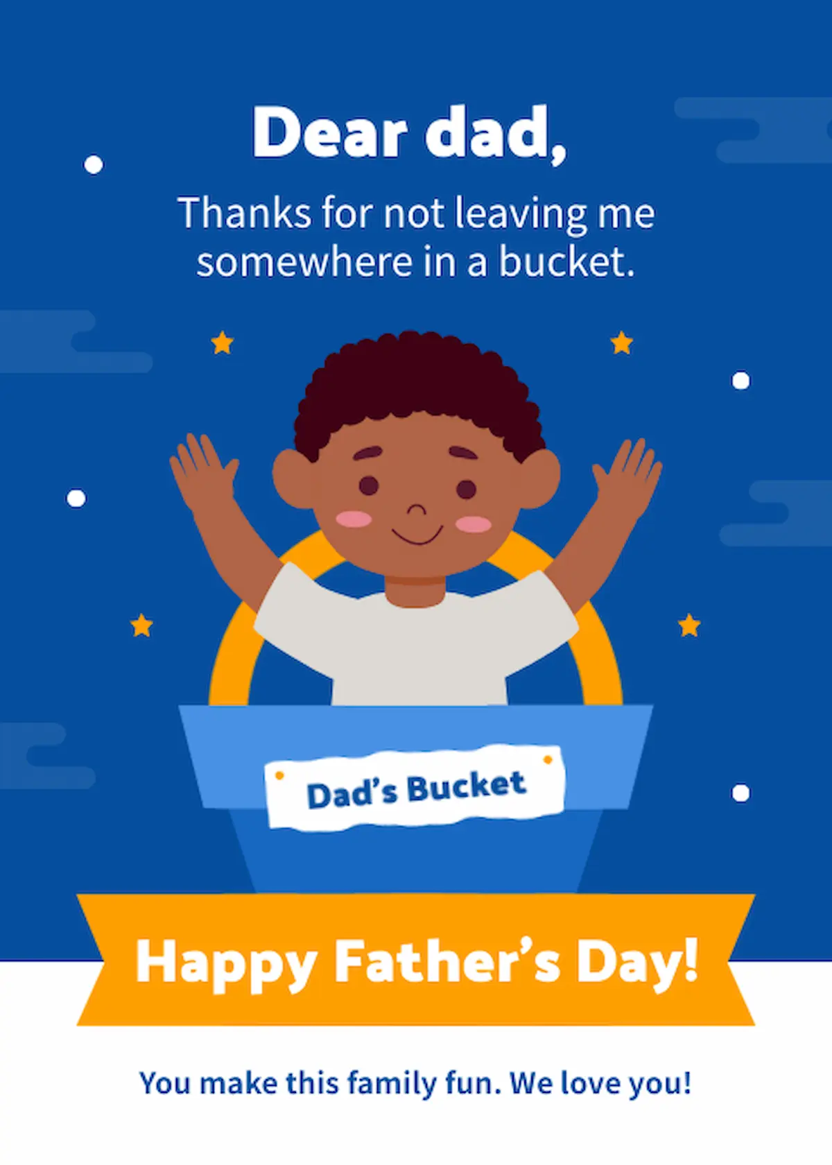 Does your dad have a quirky sense of humor? You could adapt this Father’s Day card template to thank him for being a good father – any day of the year!